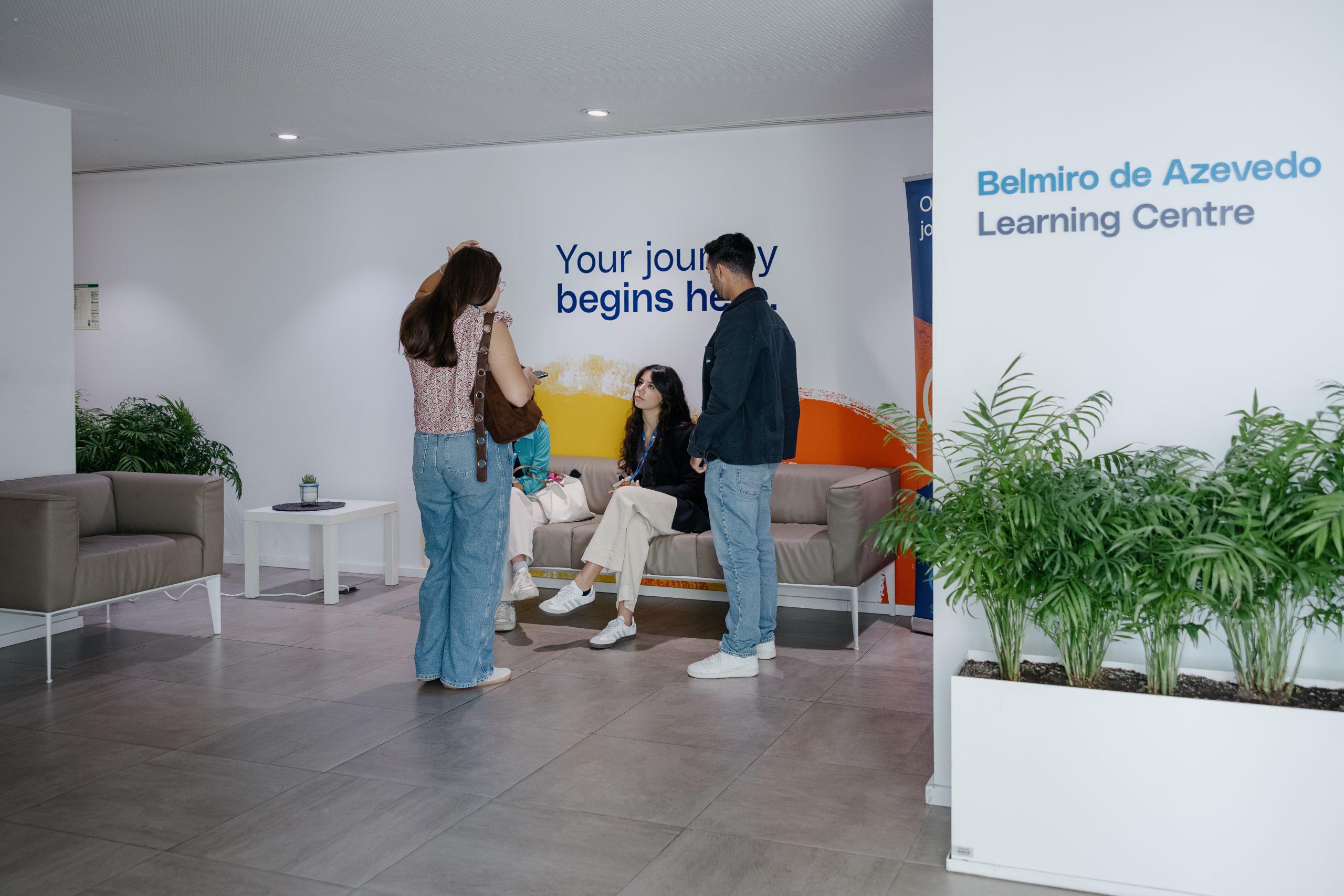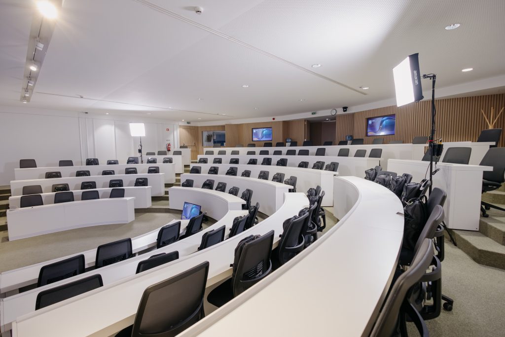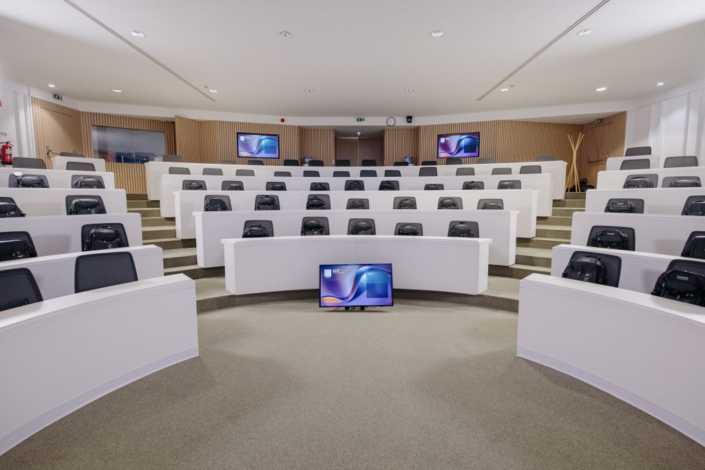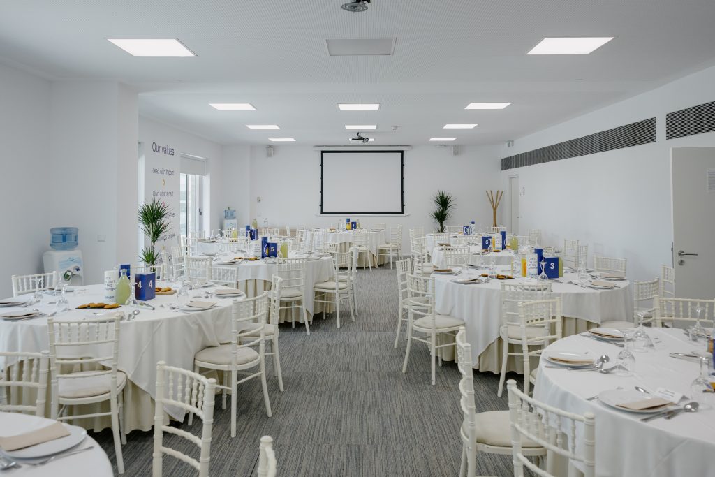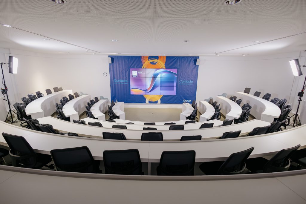Contamos com quatro salas de formação equipadas para diferentes dinâmicas de trabalho e um Auditório concebido para eventos presenciais, híbridos e digitais, com tecnologia de Teams Meeting e streaming integrada.