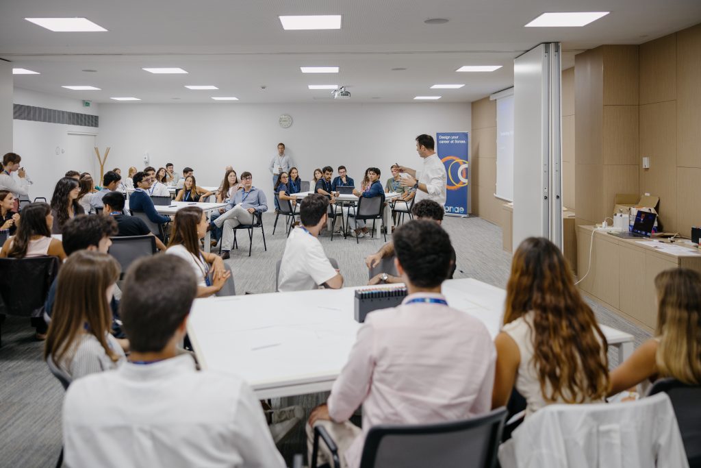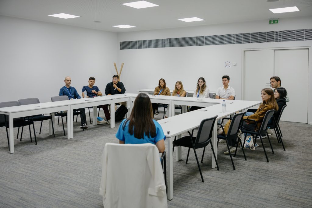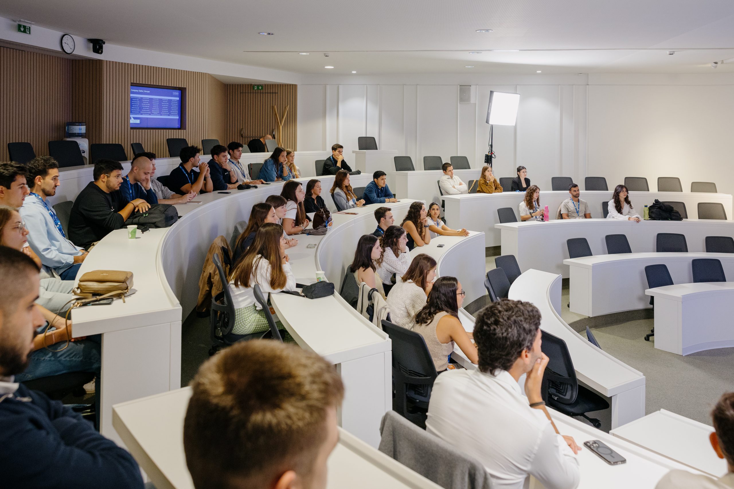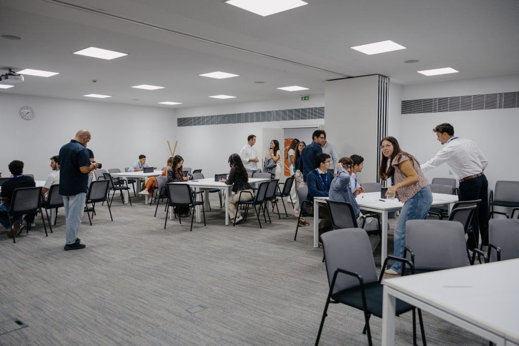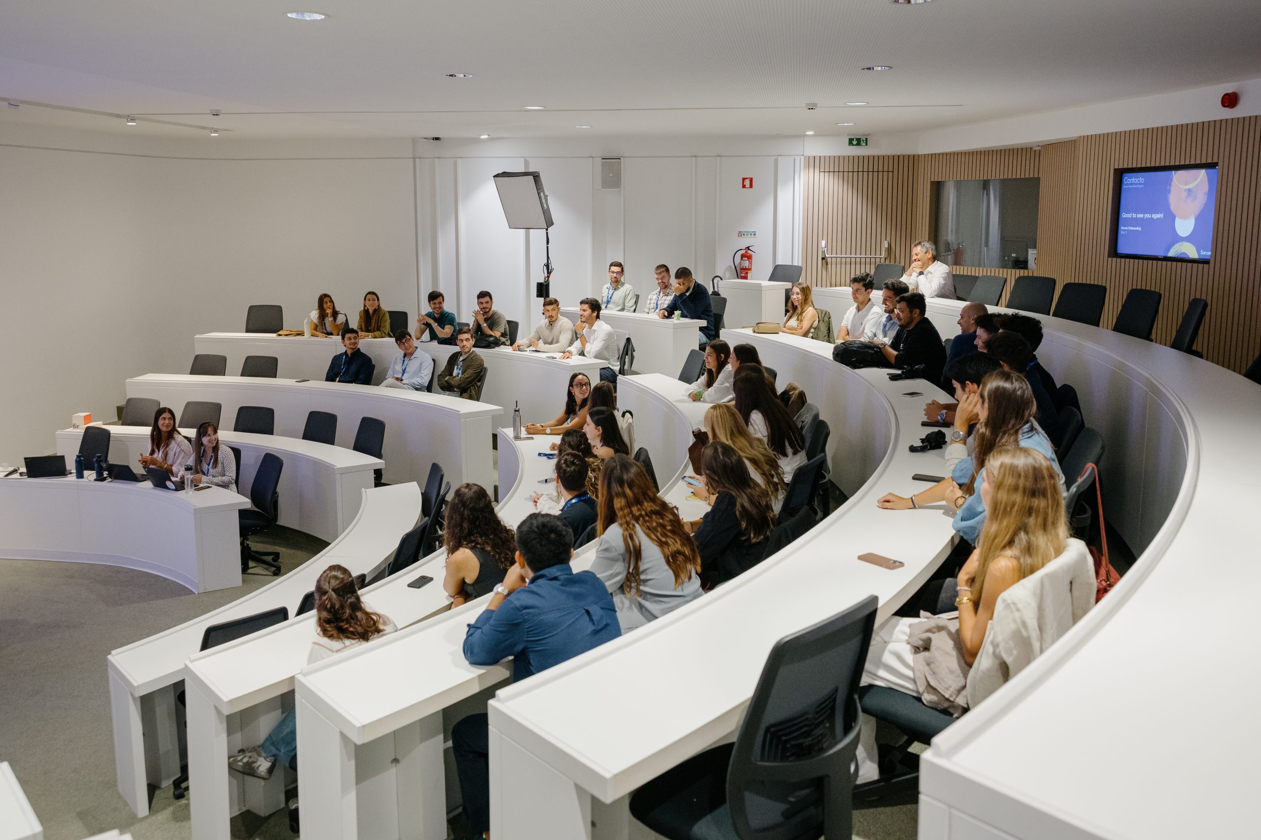 Contamos com quatro salas de formação equipadas para diferentes dinâmicas de trabalho e um Auditório concebido para eventos presenciais, híbridos e digitais, com tecnologia de Teams Meeting e streaming integrada.