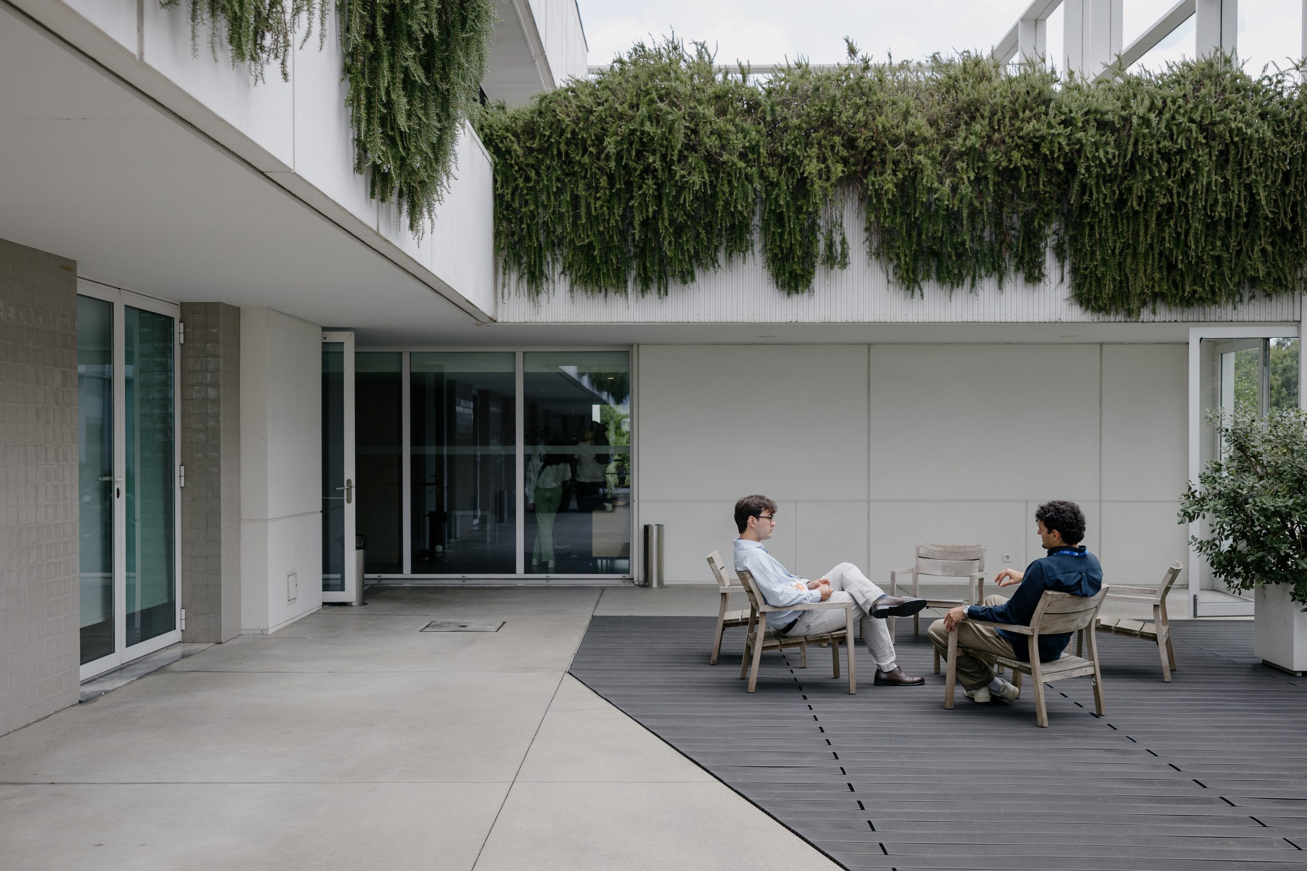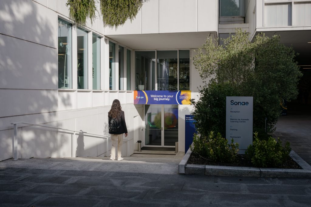 Além disso, as áreas externas que envolvem o edifício proporcionam um ambiente inspirador, integrando-se no dinamismo do Campus Sonae na Maia.